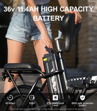Doté d’une batterie au lithium-ion de haute capacité de 11.4AH Batterie, AVDLEU A10 vélo électrique peut atteindre de 40-70km sur une seule charge en Mode ASSIST.