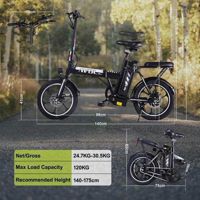 | Nom du produit | AVDLEU Vélo Électrique Pliable 16″, 250W-25km/h, 11.4Ah/36V Batterie Amovible, 40-70km (Mode ASSIST), Vélo Urbain Adolescent/Adulte |
