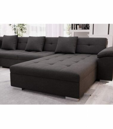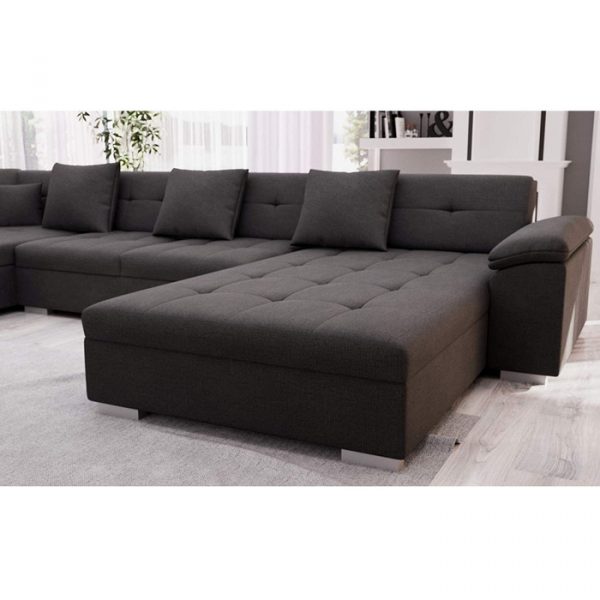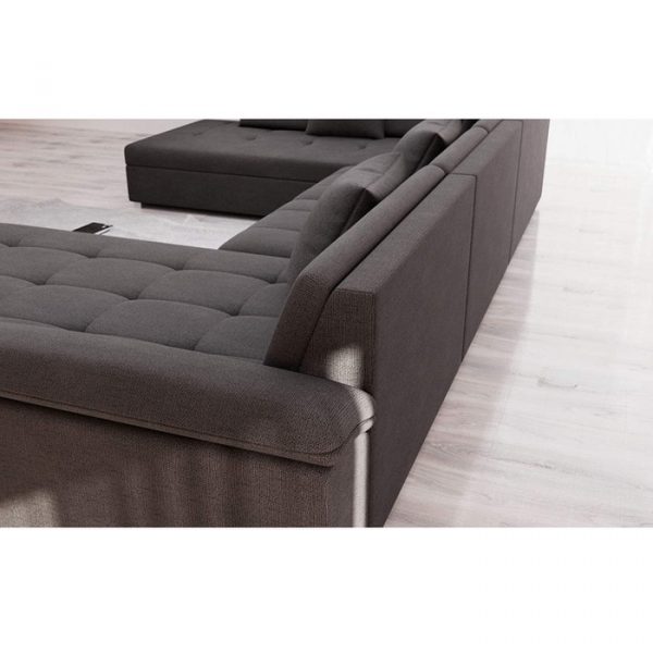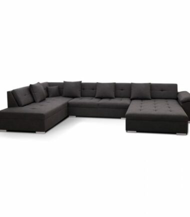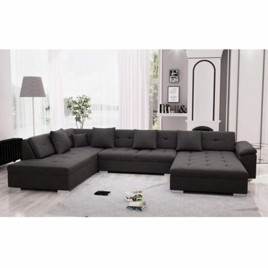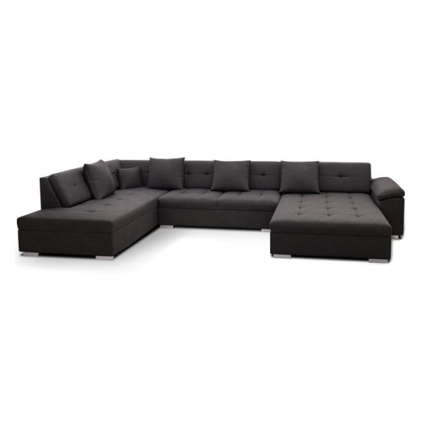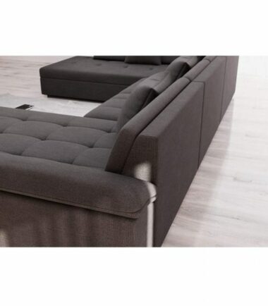 Avec des lignes épurées et des formes intemporelles, le canapé d’angle panoramique XXL en U Belmont sera la pièce centrale d’un salon contemporain et moderne. Ses deux méridiennes et ses 3.42 mètres de longueur en font un canapé idéal pour accueillir toute la famille et pour vivre d’agréables moments à plusieurs dans votre pièce à vivre. Les assises et dossiers capitonnés avec un revêtement en tissu 100% polyester accentuent le look moderne et élégant de ce canapé panoramique XXL Belmont. Enfin, les nombreux coussins de décoration fournis avec le canapé vous permettront d’agrémenter la décoration de votre salon tout en profitant d’un confort optimal.