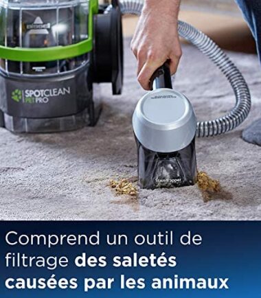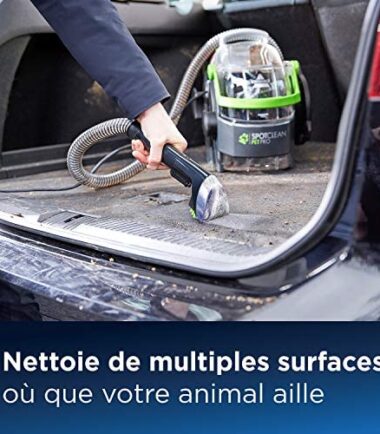 - Élimine taches et saleté sur tapis, tissus d’ameublement, escaliers, moquettes et intérieur de voitures