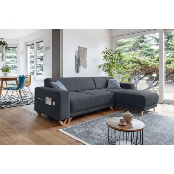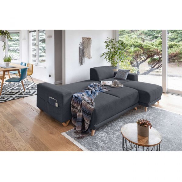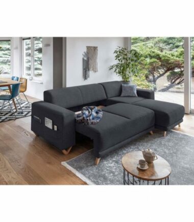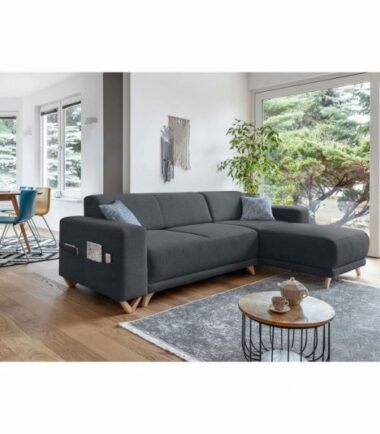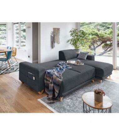 Le canapé d’angle réversible convertible avec coffre Bella vous accueillera chaleureusement pour d’agréables moments de détente et de cocooning. Pratique pour accueillir les amis et la famille les week-ends ou pendant les vacances, la fonction convertible transforme, en seulement quelques secondes, le canapé en un couchage de 195×140 cm. Idéal pour dissimuler les coussins, plaids, draps, couvertures, jouets, etc., un coffre de rangement est situé sous l’assise du canapé. Enfin, une poche située sur le côté d’un des accoudoirs permet de ranger les télécommandes et magazines.