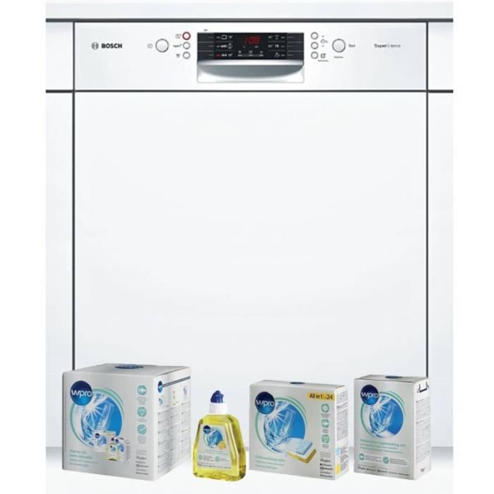 Lave vaisselle intégrable Ligne série 4 6 programmes dont Auto 4565°C et Verre 40°C Programme Entretien de la machine Options Vario Speed Plus (3 fois plus rapide), Hygiène Plus et Séchage Extra : une phase de séchage augmentée pour un résultat optimal sur les matériaux difficiles à sécher Système Auto 3in1 : détection lessivielle automatique Boîte à produit Maxi Performance Système Super Brillance : conserve
