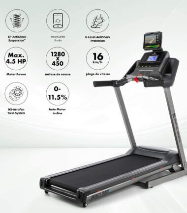 Visibilité complète : écran 5″ LCD pour afficher les données de la séance et support de tablette intégré