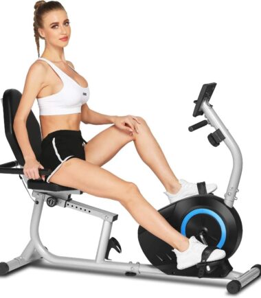 ANCHEER Vélo d'appartement horizontal magnétique avec selle réglable, 8 niveaux de résistance, capteurs de pulsation intégrés, super silencieux pour entraînement de récupération, max 130 kg