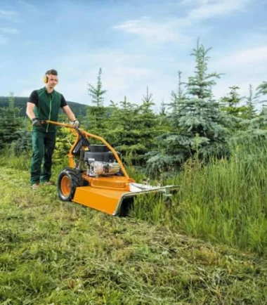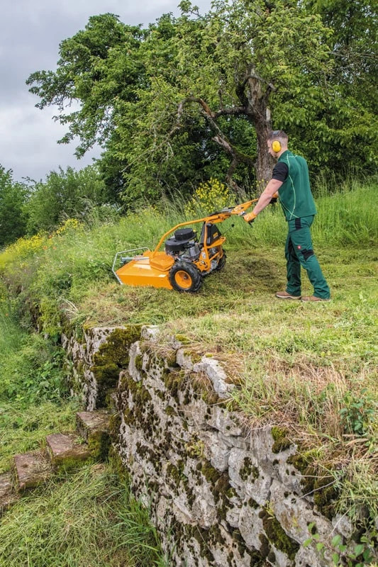L’AS 73 4T B&S dispose de certaines sécurités qui le rendent absolument sécuritaire pour tondre sur le plat comme sur les pentes. Il s’agit du blocage du différentiel et du frein de parking automatique. Ce dernier est automatiquement activé par le découplage de la propulsion et garantit l’immobilisation de la tondeuse à hautes herbes.