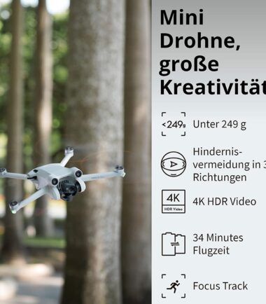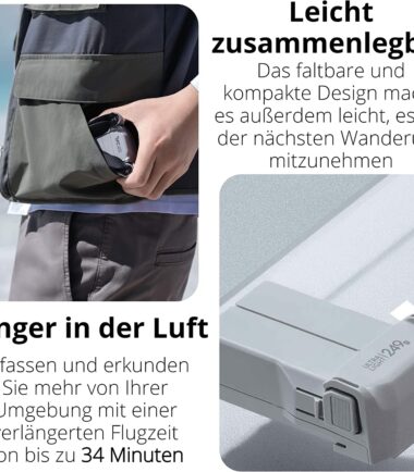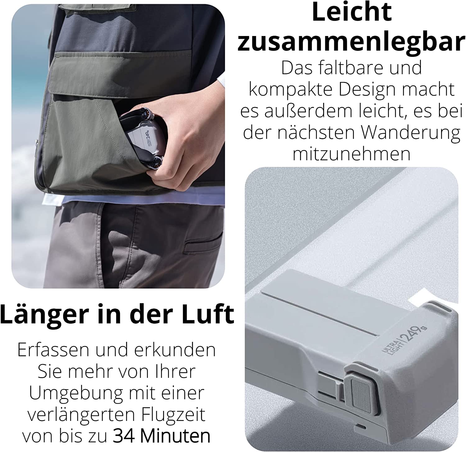 - Voler sans souci – Avec un poids inférieur à 249 g, la Mini 3 Pro ne nécessite pas d’enregistrement dans la plupart des pays. Le design pliable et compact permet également de l’emporter facilement dans chaque aventure