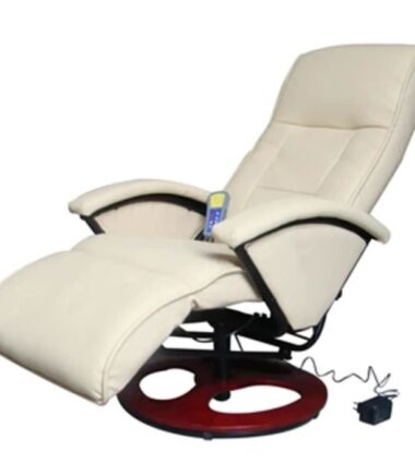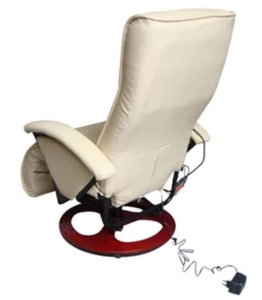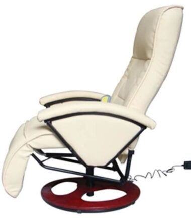 Ce fauteuil de massage luxueux est esthétiquement conçu et de façon ergonomique pour compléter n’importe quelle pièce de votre maison. Ce fauteuil de massage électrique a un dossier chauffé. 10 nœuds de massage pour les muscles de la tête, du cou, du dos et du mollet. La télécommande a 10 programmes de sélection et fonction de minuterie. Le rembourrage contient de la mousse PUR, qui est très stable, perméable à l’air et durable. La base du fauteuil est faite de bois très fort. Le matériau de tapisserie d’ameublement est le cuir synthétique durable et confortable, qui est facile à nettoyer. Le dossier est mécaniquement réglable dans différentes positions de 125 à 130 degrés et le repose-pied peut également être ajusté. Le fauteuil peut tourner librement.