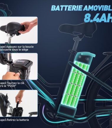 De plus, Le batterie de vélo peut être retirée et rechargée, c’est plus pratique et sécuritaire.