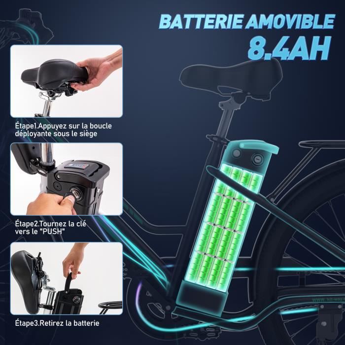 • Type de batterie: 36V/8.4AH Batterie au lithium-ion 18650