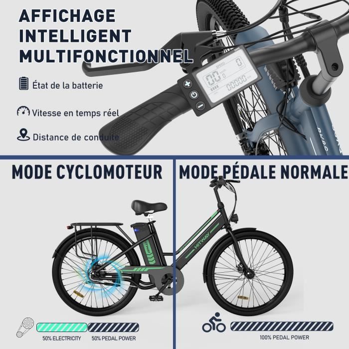 HITWAY 26 Vélo électrique » Noir – Moteur 250W – Batterie Lithium Amovible 36V 8,4Ah