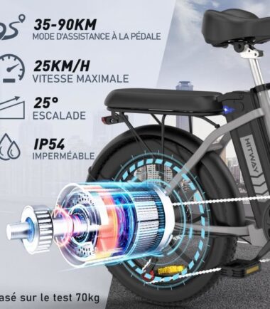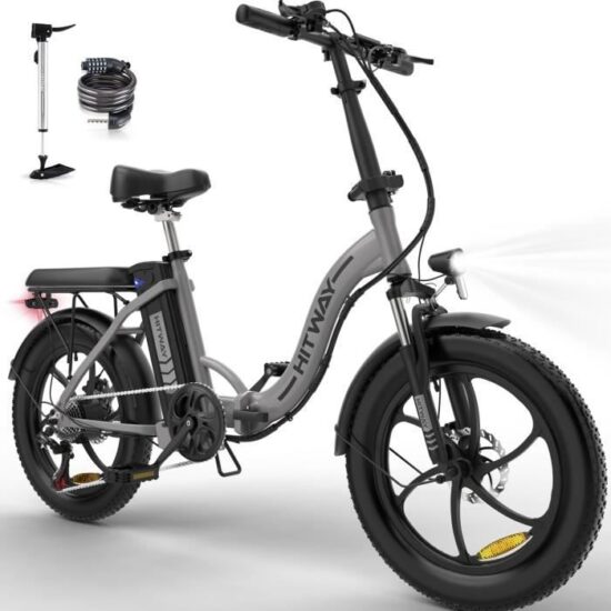 | Nom du produit | HITWAY Vélo Électrique 20″ Pliable – Batterie 36V – 11,2Ah – Moteur 250W – 7 Vitesses – Argent |
