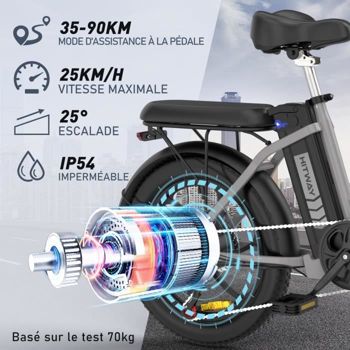 HITWAY le vélo électrique est équipé d’un moteur 250W 36V, qui peut facilement effectuer une conduite inclinée à 25 degrés.Avec une batterie 11.2AH amovible intégrée et une autonomie de 4 à 5 heures d’environ 35-90KM sur une seule charge.