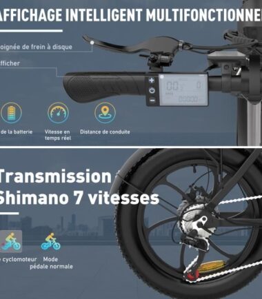 Équipé d’une transmission Shimano à 7 vitesses, il peut facilement gérer preque toutes les conditions de route telles que les montées et les descentes pendant la conduite. Vous pouvez également entrer en mode régulateur de vitesse en contrôlant la manette des gaz. Bonnes performances de conduite.