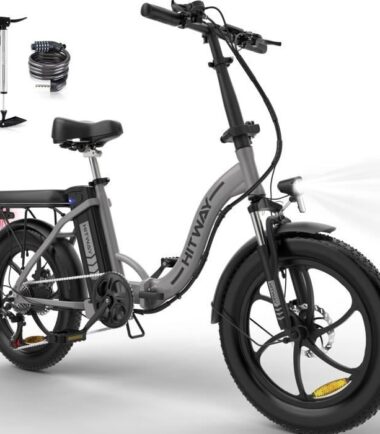HITWAY Vélo Électrique 20″ Pliable – Batterie 36V – 11,2Ah – Moteur 250W – 7 Vitesses – Argent