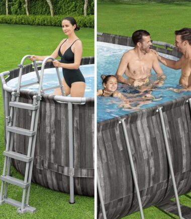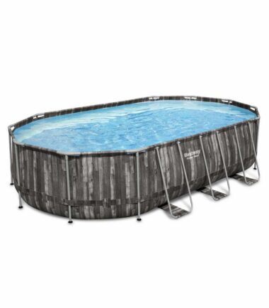 Kit piscine géante complet BESTWAY – Spinelle – ovale tubulaire 6×3 m motif aspect bois.