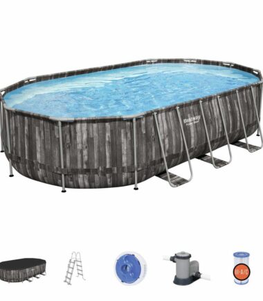 Kit piscine géante complet BESTWAY – Spinelle – piscine ovale tubulaire 6×3 m motif aspect bois. Pompe de filtration. Échelle. Bâche de protection. Diffuseur ChemConnect