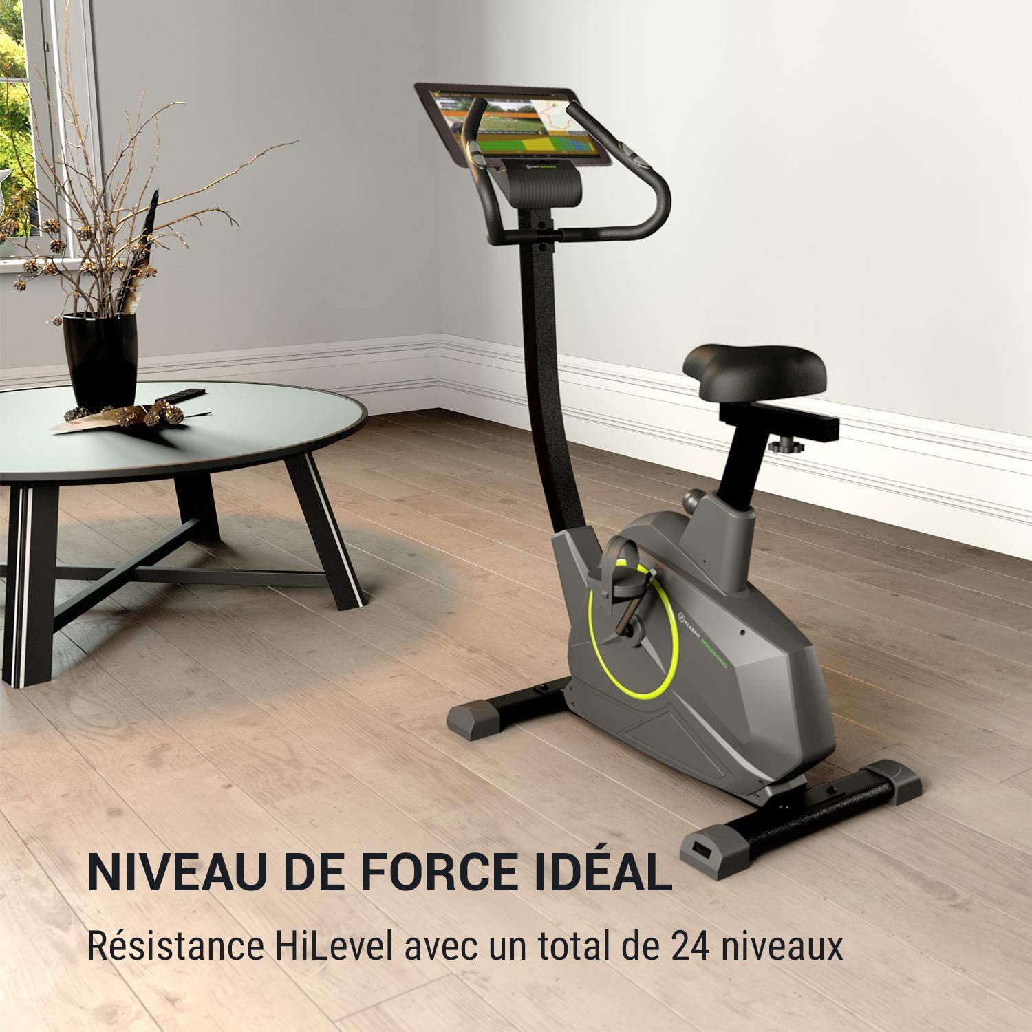 Soyez le premier à laisser votre avis sur “KLAR FIT Epsylon Cycle – Vélo d’appartement, 24 Niveaux, Système de freinage magnétique, Support de Tablette, Vélo de Fitness, Capteur de fréquence Cardiaque, Charge Max: 120kg, Noir”