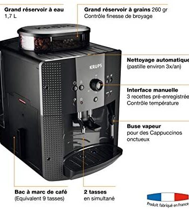 Découvrez sans effort l’essence même de l’espresso grâce à la machine à café à grain automatique KRUPS Essential. Le format compact pratique de cette machine à café broyeur grain automatique, ses fonctions faciles à utiliser, sa technologie perfectionnée et son panneau de commandes hautement intuitif vous apportent le goût authentique du café fraîchement moulu et de l’espresso, directement dans votre tasse.