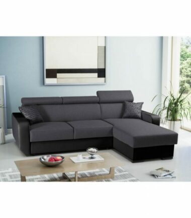 Avec son assise confortable et ses trois têtières réglables en plusieurs positions, le canapé d’angle réversible Dustin est le compagnon idéal pour passer des moments de détente agréables dans le salon de votre appartement ou de votre maison. Son design actuel et ses lignes épurées vous permettront de l’intégrer dans une décoration d’intérieur moderne, chaleureuse et cosy. Le canapé d’angle Dustin est proposé en bi-matière, simili pour la caisse et le contour des accoudoirs et tissu 100% polyester pour l’assise et les dossiers.