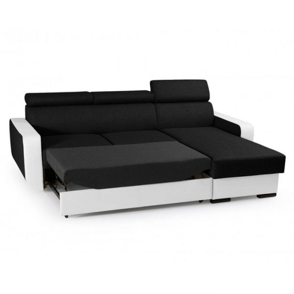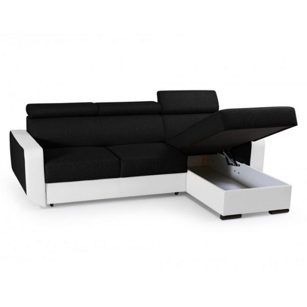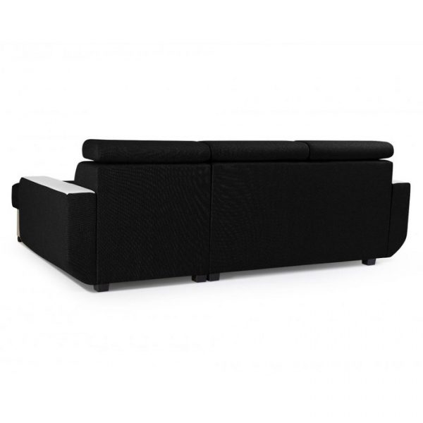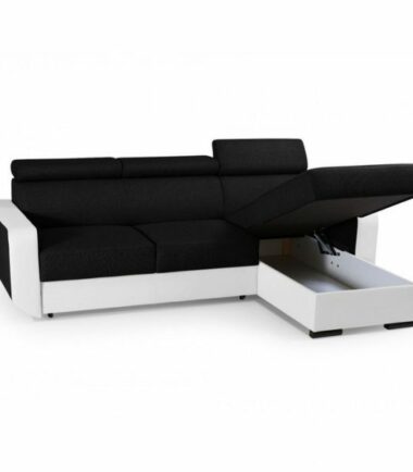 Outre ses trois têtières réglables, le canapé d’angle réversible 4 places Dustin est équipé d’un coffre de rangement situé sous la méridienne et dans lequel vous pourrez ranger coussins, plaids, livres et télécommandes. Pratique quand vous recevez des amis ou simplement pour cocooner le dimanche après-midi, la fonction convertible se déplie en un instant en tirant sur la poignée du tiroir située sous l’assise du canapé. A noter que son angle est réversible et que vous pouvez le positionner à gauche ou à droite du canapé en échangeant les crochets ainsi que les accoudoirs.