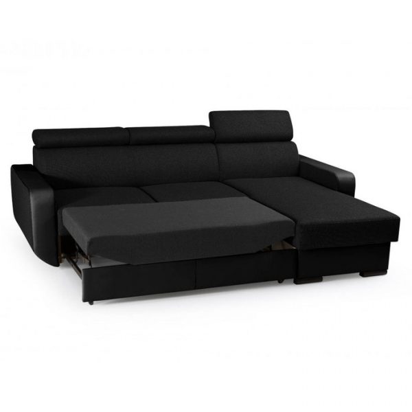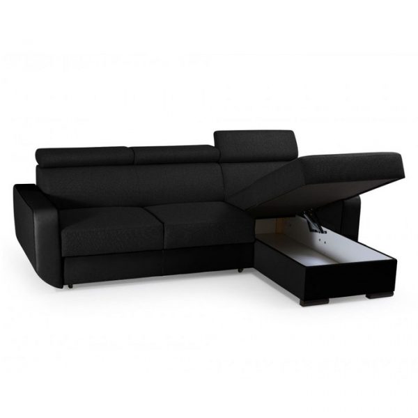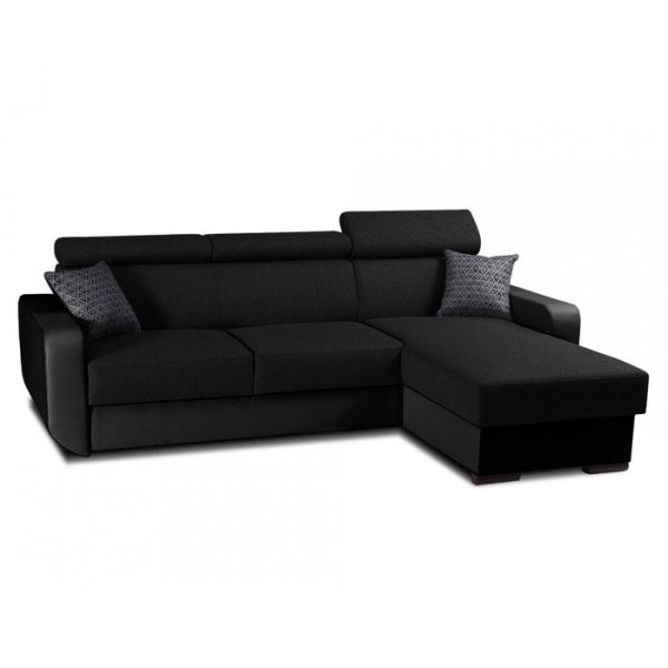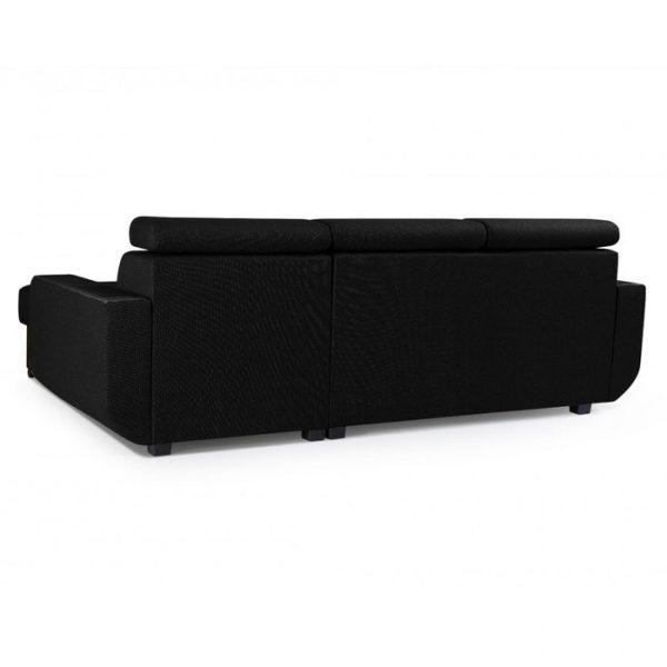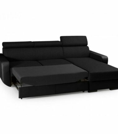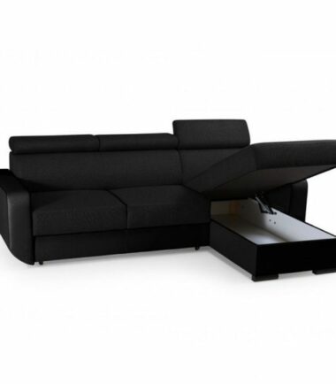 Outre ses trois têtières réglables, le canapé d’angle réversible 4 places Dustin est équipé d’un coffre de rangement situé sous la méridienne et dans lequel vous pourrez ranger coussins, plaids, livres et télécommandes. Pratique quand vous recevez des amis ou simplement pour cocooner le dimanche après-midi, la fonction convertible se déplie en un instant en tirant sur la poignée du tiroir située sous l’assise du canapé. A noter que son angle est réversible et que vous pouvez le positionner à gauche ou à droite du canapé en échangeant les crochets ainsi que les accoudoirs.