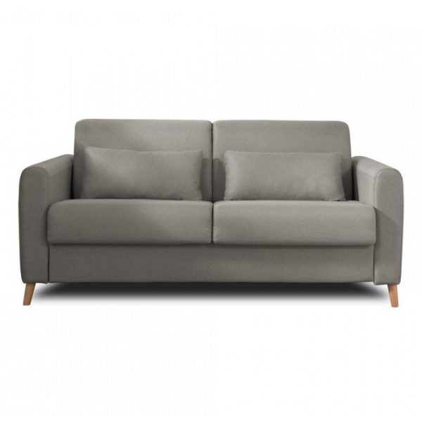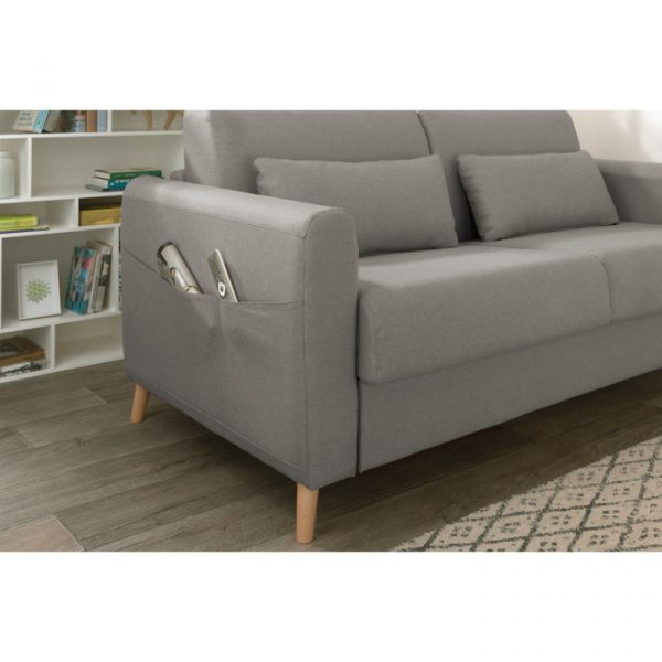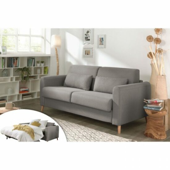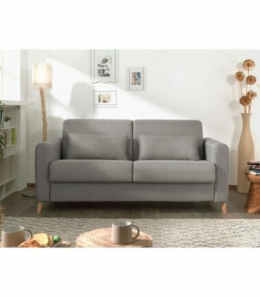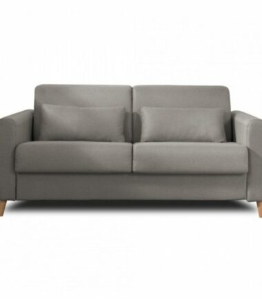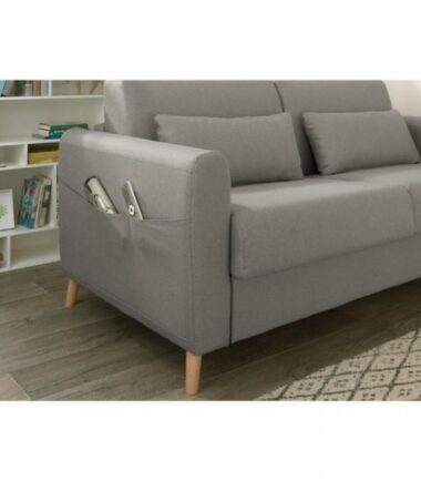 Le sommier du canapé 3 places convertible Timo est équipé d’un mécanisme métallique à ouverture express qui vous permet de déplier et replier le lit très facilement sans retirer les coussins de l’assise et du dossier. Avec ses dimensions de 143×196 cm, le lit accueille un matelas aux dimensions standards de literie de 140 par 190. Vous y passerez de bonnes nuits réparatrices ! Et la journée, Timo n’est pas en reste puisqu’il est confortable grâce à son assise en mousse polyuréthane et ses coussins de dossiers accueillants.