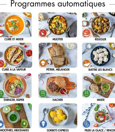 Ce parfait commis de cuisine vous permet de réaliser jusqu’à 4.8 litres de préparations simplement grâce à ses programmes automatiques et ses recettes guidées, pour les experts comme pour les débutants en cuisine. Vous aurez ainsi la possibilité de patienter pendant que le repas se prépare.