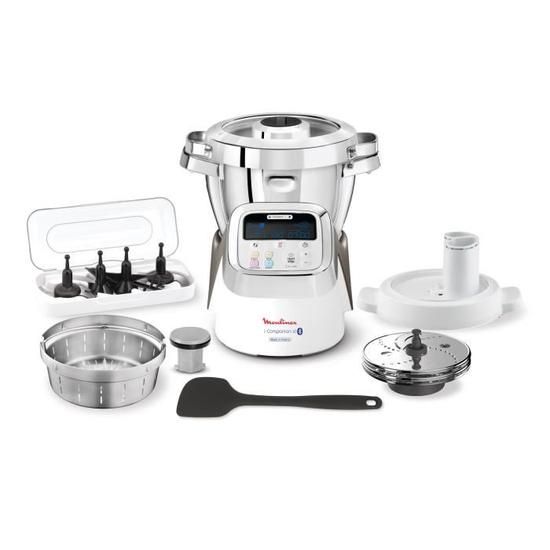 Robot cuiseur connecté I-Companion XL – Puissance : 1550 W – Coloris : gris – Application gratuite compatible IOS et Android – 10 programmes et sous-programmes automatiques – 13 vitesses + Pulse – Accessoires : panier vapeur, batteur, mélangeur, couteau hachoir, couteau pétrir/concasser, accessoire fond plat + découpe-légumes.