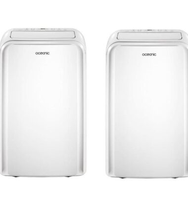 | Description du produit | Oceanic Climatiseur mobile – Fonctions Déshumidificateur et Ventilateur – Capacité de refroidissement : 2100 Watts (7000 BTU) – Clavier à touches électroniques – Ecran LED – Panneau de ventilation orientable – Télécommande – Minuteur : 1-24 heures – Débit d’air : 300 m3 / h – Capacité de déshumidification: 19,2 L / jour – Classe énergétique : A – Blanc |