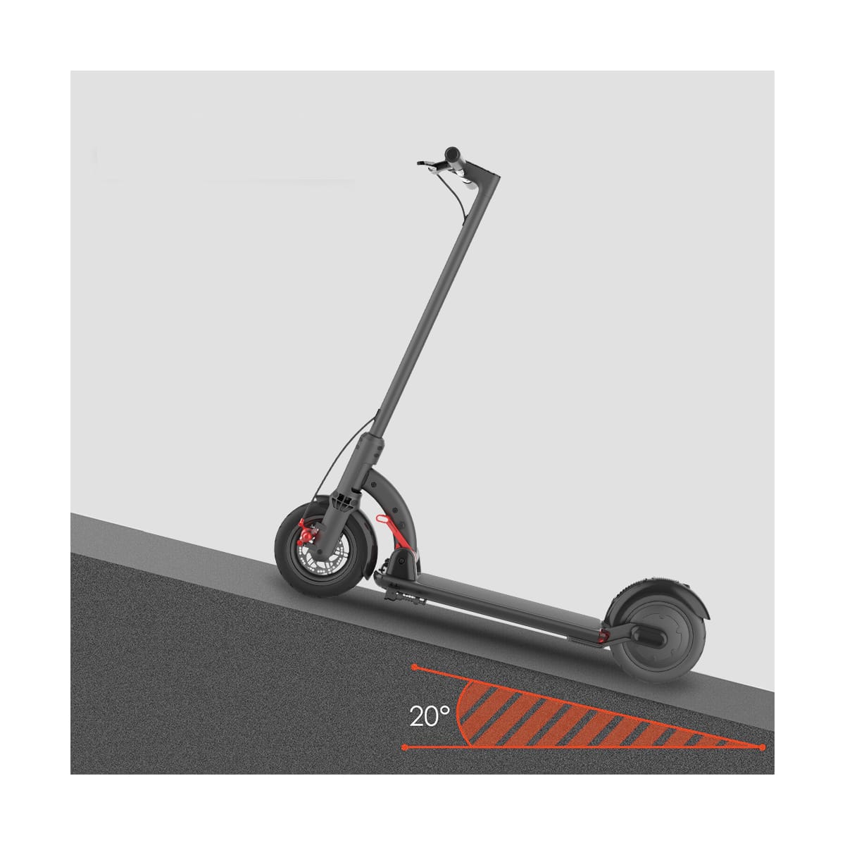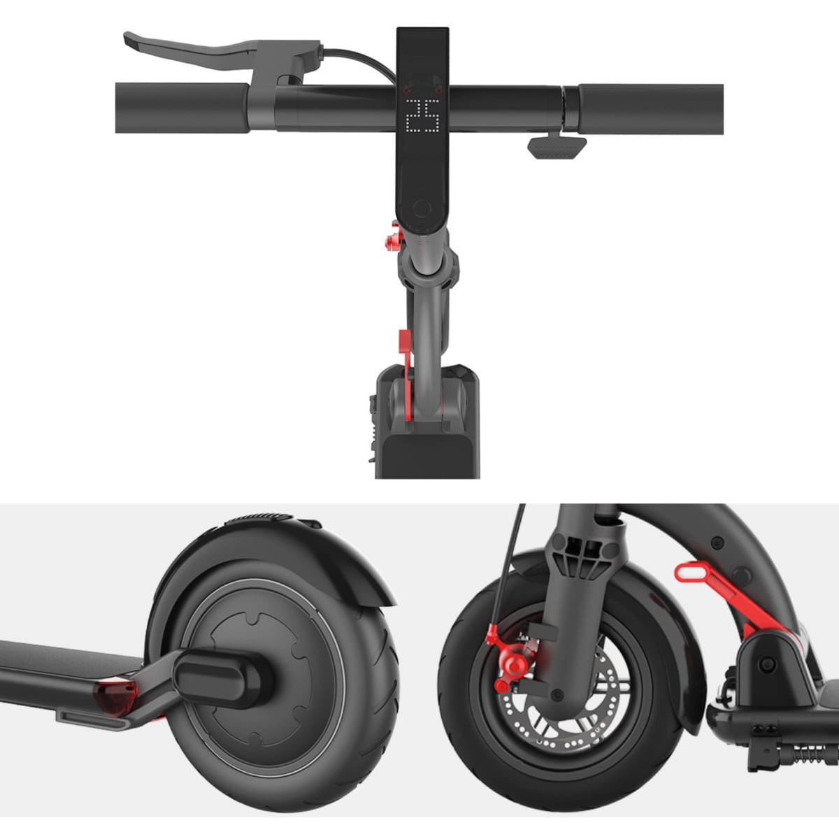 Description du produit Trottinette électrique avec moteur Brushless 300 watts, pliable et peu encombrante, équipé de roues 8,5 pouces en gomme et chambre et à air.