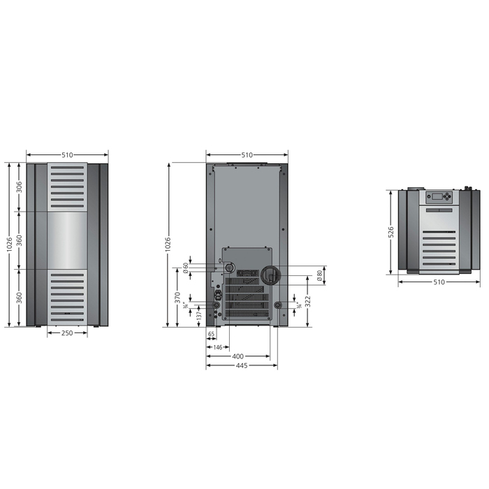 | Dimensions de l’appareil (H x L x P) (mm): | 1026 x 510 x 526 |