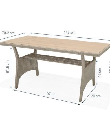 | Nom du produit | Salon de jardin avec table repas en résine tressée |