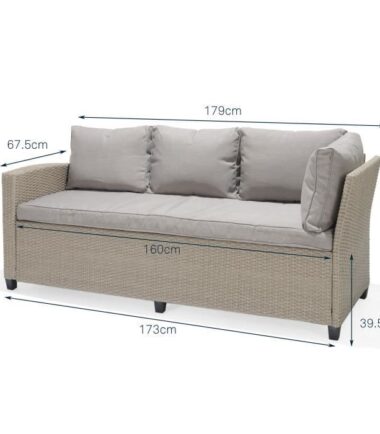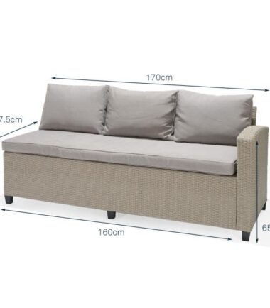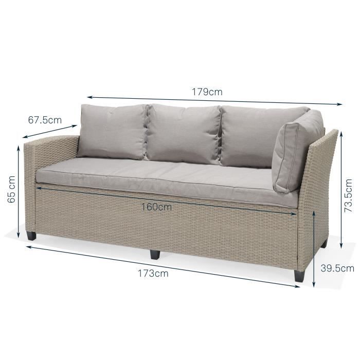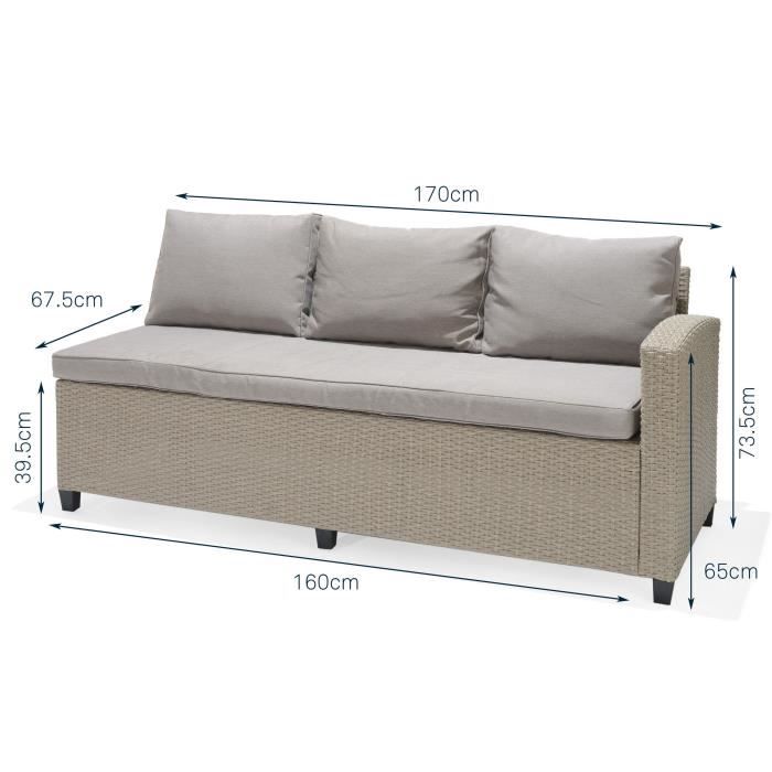 | Dimensions (L x p x h) | Angle gauche : 179 x 66 x 73 cm Angle droit : 169 x 66 x 73 cm Table : 145 x 75 x 67 cm |