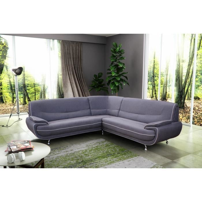 | Description du produit | SPACIO Canapé d’angle réversible fixe 6 places gris Style et design contemporain Bois massifs (pin et bouleau) revêtus de tissu Assise ferme en mousse PU 25 kg/m³ Suspension ressorts zigzag Pieds en métal Sangles élastiques Fabrication européenne |