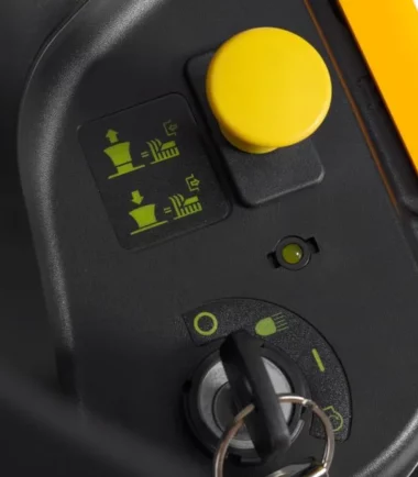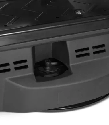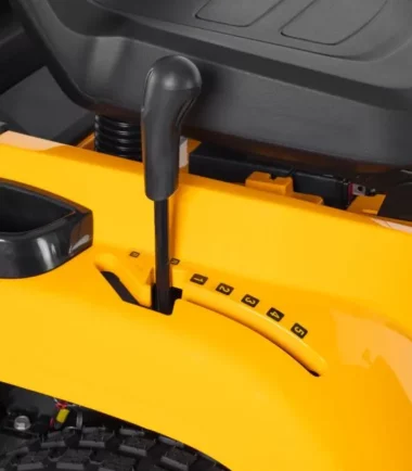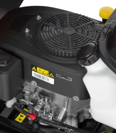Le plateau de coupe de 84 cm est doté de deux lames et de sept réglages de hauteur de coupe allant de 25 à 80 mm ainsi que d’un embrayage électromagnétique commode pour engager la lame activable via un bouton.