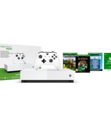 Xbox One S All Digital + 3 jeux dématérialisés : Fortnite, Sea of Thieves et Minecraft + 1 mois au Xbox Live Gold